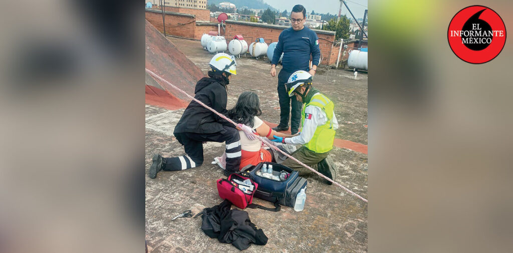 Una mujer de nombre Margarita de 50 años de edad, fue atendida de inmediato por personal de emergencias del municipio de Metepec, tras sufrir una caída en la azotea de un edificio en la Unidad Habitacional La Hortaliza.