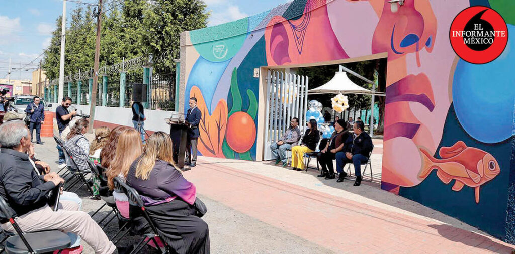 Flores Fernández mencionó durante el evento y rodeado de vecinas y vecinos del lugar que esta pintura fue realizada en la unidad deportiva, realizándose dentro del programa Ruta de la Cultura.